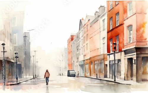 Man exploring city streets, minimal watercolor summer travel