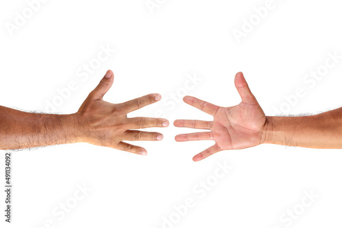 Man hand or male hand front and back isolated on white background