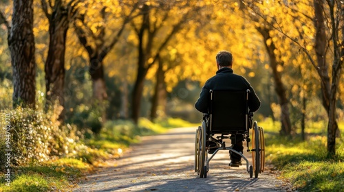 Man in a wheelchair enjoying a tranquil autumn day in the park