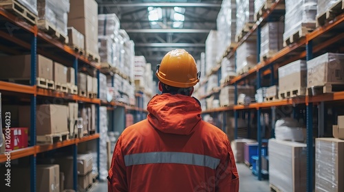 Man in Hardhat Working in Warehouse Logistics and Equipment