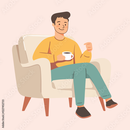 Man is relaxing with hot drink vector illustration