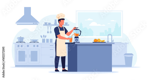 Man Preparing Healthy Smoothie In The Kitchen With Modern Style Design