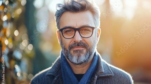 Man professional advertising poster mockup. Man with glasses.
