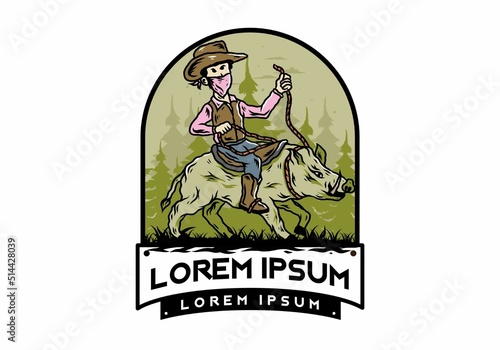Man riding a wild boar illustration