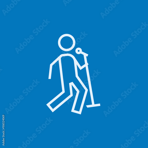 Man singing with microphone line icon.