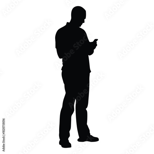 Man Standing and Using Smartphone Silhouette Vector Illustration
