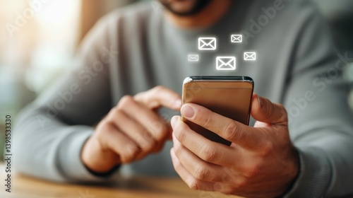 Man using smartphone, with email notifications, staying connected in modern lifestyle.