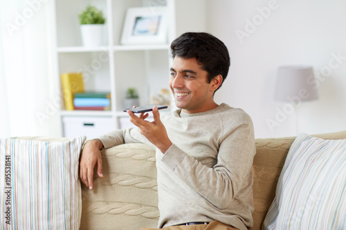 man using voice command recorder on smartphone
