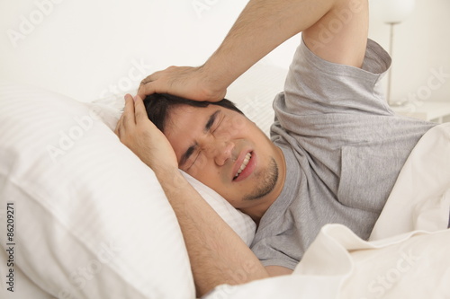 Man waking up with headache