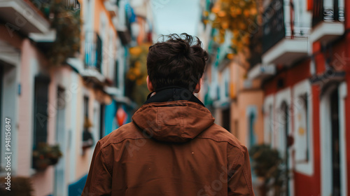 Man Walking Down Street Next Wall