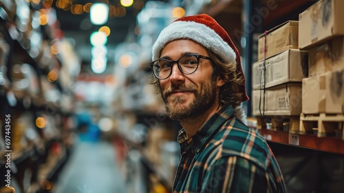 Man Wearing Santa Hat in Store