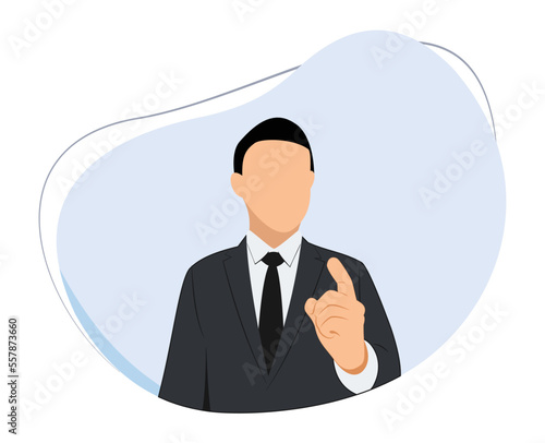 man wearing suit raised index finger. illustration warns. man raising index finger. businessman giving orders