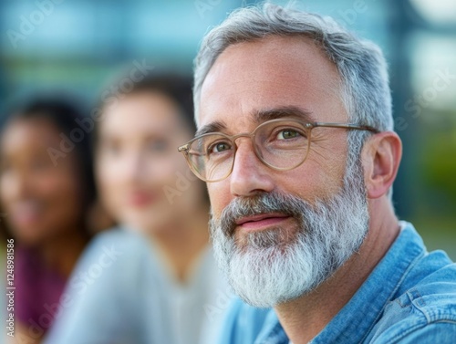 man with glasses and beard with people in background