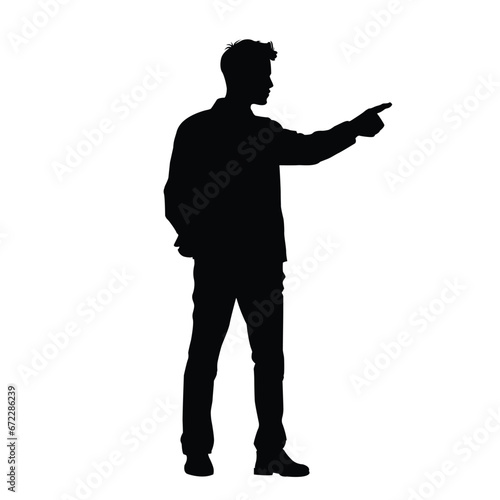 Man with Pointing Gesture Silhouette on White