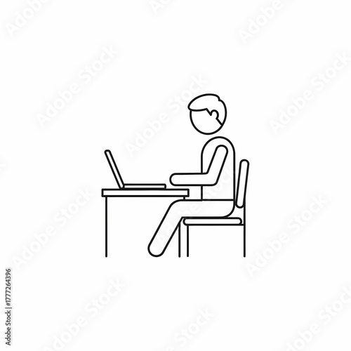 Man working on laptop while sitting at desk in minimalist style