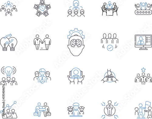 Management brainstorming outline icons collection. Brainstorming, Management, Planning, Ideas, Productivity, Creativity, Innovation vector and illustration concept set. Strategy, Growth, Analysis