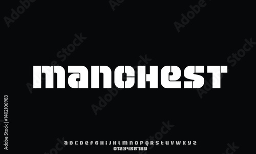 Manchester vector font alphabet with numbers