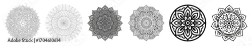 Mandala design set including intricate, floral, geometric, filled, and outline styles isolated. Decorative patterns for spiritual and artistic projects.