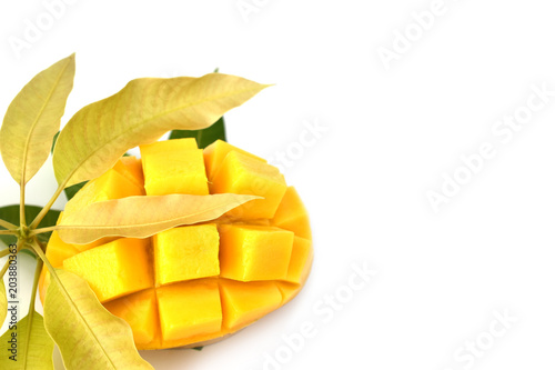 Mango fruit with leaf isolated white background