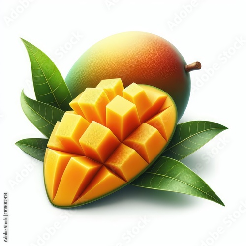 Mango pieces and slices isolated on a white background