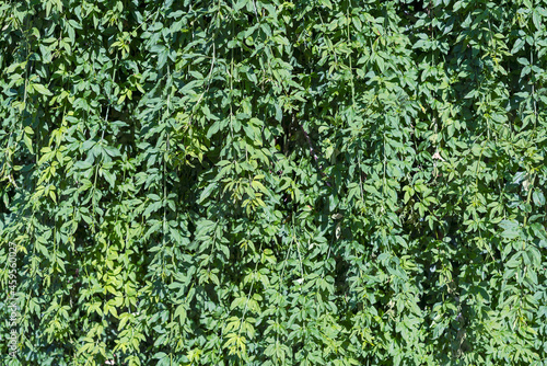 many branches with green leaves as a natural hedge in the city garden
