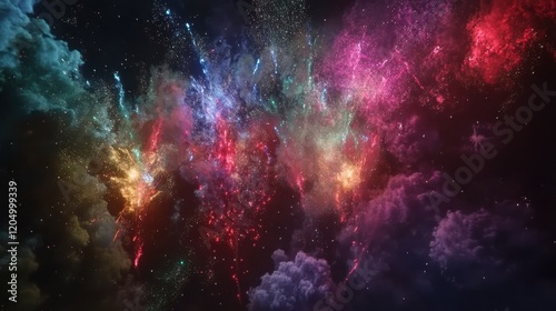 Many multicolored fireworks exploding in the sky at night