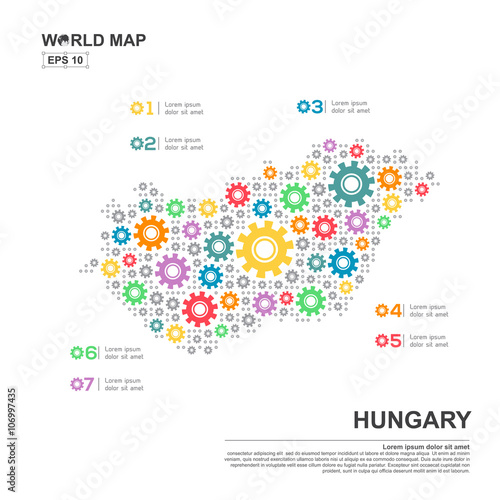 Map Of Hungary Infographic design template with gear chain