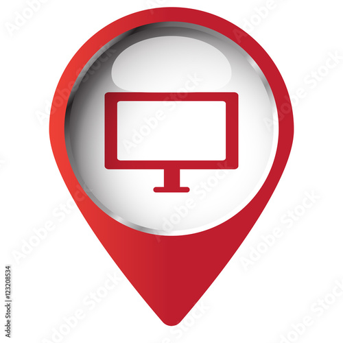 Map pin symbol with Computer Screen icon. Red symbol on white ba