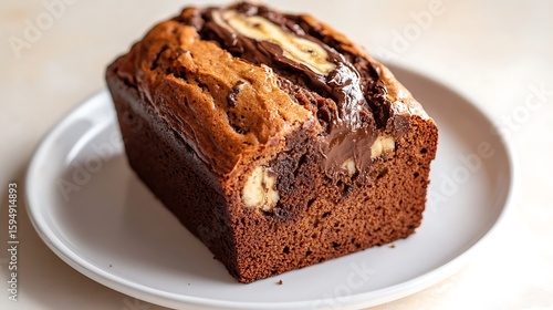 Marbled Chocolate and Vanilla Cake Loaf on a White Plate