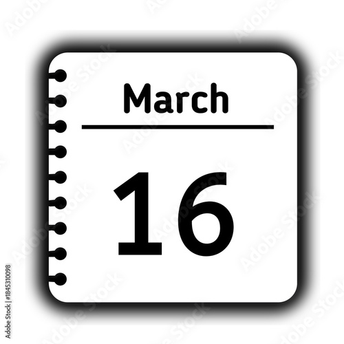 March 16st calendar new year day reminder icon note pad diary symbol