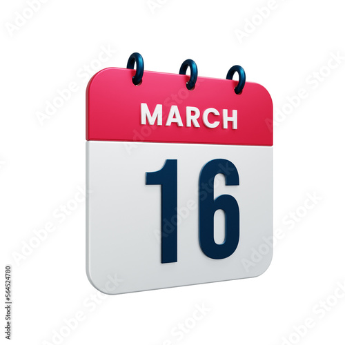 March Realistic Calendar Icon 3D Illustration Date March 16