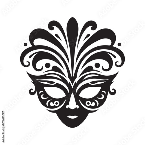 Mardi Gras mask vector silhouette outline logo design concept illustration