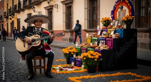 Mariachi playing guitar at the street