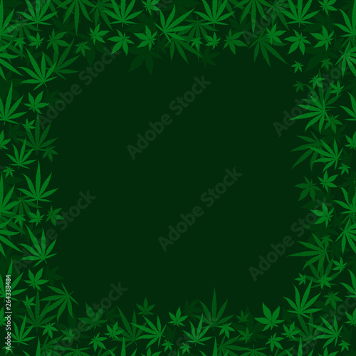 Marijuana dark green grass square frame banner. Cannabis hemp plant. Border frame isolated transparent background. Copy space for text place.