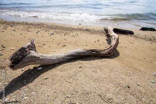 Marine details on the shore. A beautiful seascape with a dynamic view.