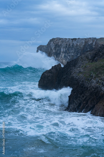 Maritime storm on the coast of Cué, around Antilles beach. Cantabrian Sea. Council of LLanes. Asturias. Spain. Europe