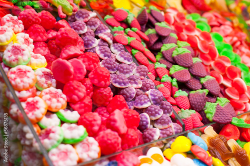 Market stall full of candys in La Boqueria Market.Barcelona