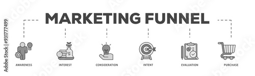 Marketing icons process structure web banner illustration of strategy, concept, communication, target group, online, print and business icon png transparent background.