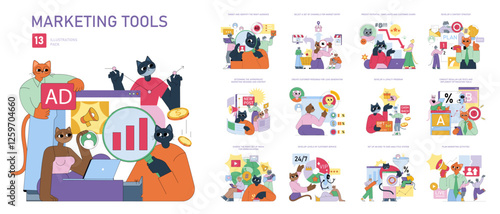Marketing Tools. Flat Vector Illustration