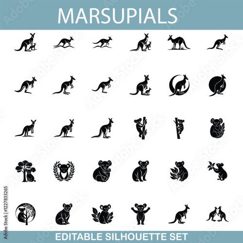 Marsupials Editable Kangaroo and Koala Silhouette Set