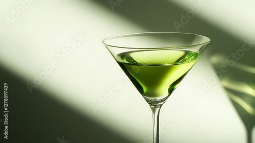 Martini glass with translucent green liquid