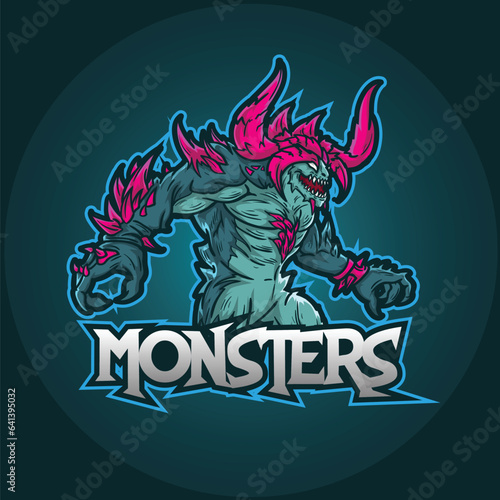 Mascot logo e-sports logo template vector editable design monster devil evil