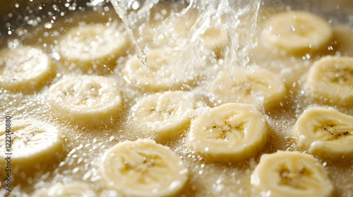 Mashed bananas splashing in creamy milk sauce, captured in high-speed photography