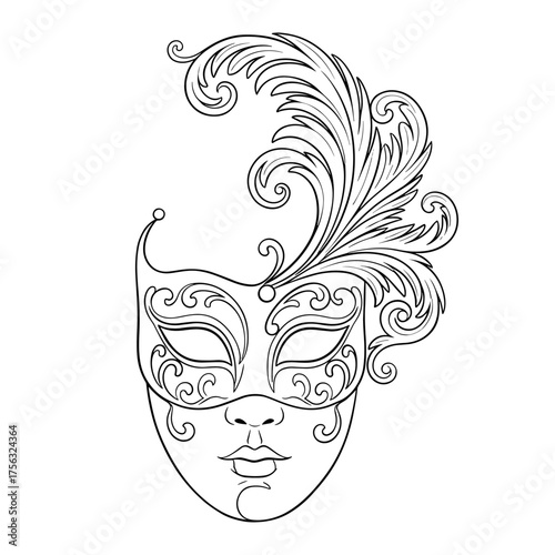 masquerade mask line art black and white
