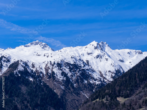 Massif de la Lauzière en hiver avec ciel bleu et neige et roche et aiguilles