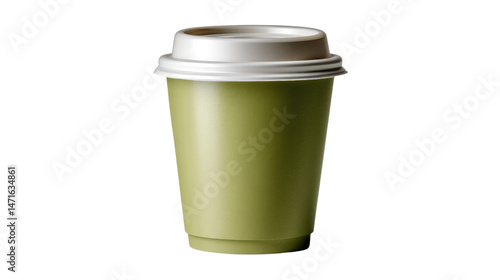 Matcha Latte in a Disposable Cup: A refreshing Matcha latte with its vibrant green hue, housed in a portable, disposable cup, inviting moments of calm, comfort and a burst of energy.