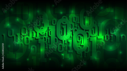 Matrix green background with binary code, shadow digital code in abstract futuristic cyberspace, artificial intelligence, well organized layers