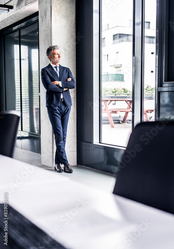 Mature businessman standing in office loooking out of window