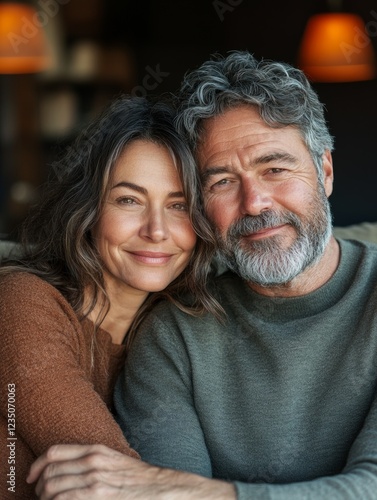 Mature Couple Embracing at Home for Family or Relationship Marketing Campaigns