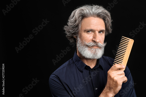 Mature male hairdresser on dark background